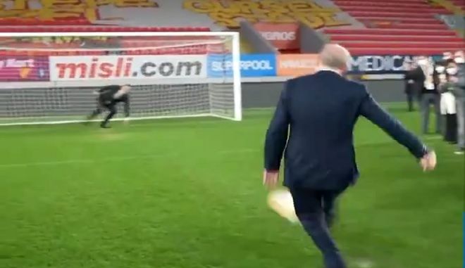 Ο πρόεδρος της ομάδας ξενάγησε τον Ερντογάν στο γήπεδο και ο πρόεδρος δεν αρνήθηκε να εκτελέσει ένα πέναλτι μπροστά στις κάμερες και στους φωτογράφους.
