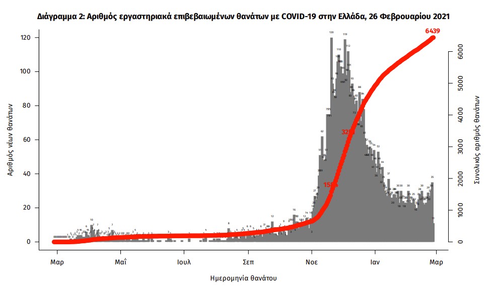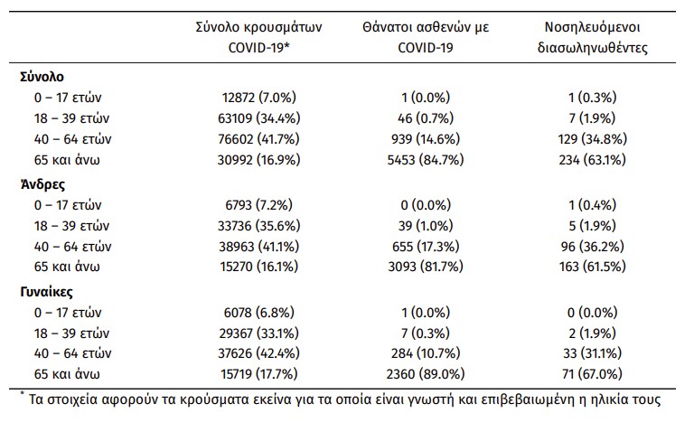 Οι νέοι θάνατοι ασθενών με COVID-19 είναι 29, ενώ από την έναρξη της επιδημίας έχουν καταγραφεί συνολικά 6.439 θάνατοι. Το 95.7% είχευποκείμενο νόσημα ή/και ηλικία 70 ετών και άνω.
