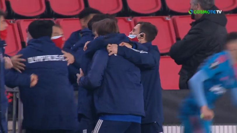 Το προπονητικό τιμ έπεσε πάνω στον Πέδρο Μαρτίνς και στη συνέχεια οι παίκτες αγκάλιασαν τον Πορτογάλο τεχνικό, πανηγυρίζοντας όλοι μαζί τη σπουδαία επιτυχία.