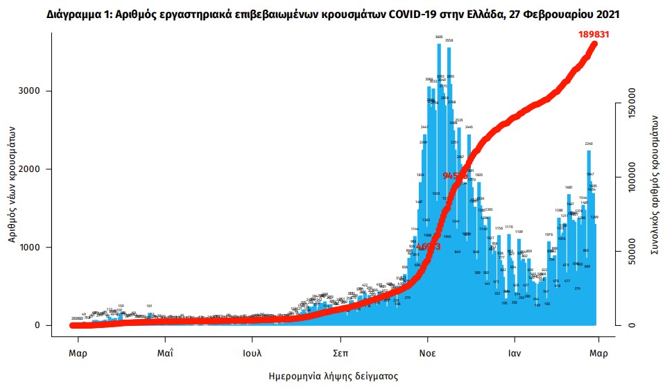 Έτσι, ο συνολικός αριθμός των κρουσμάτων ανέρχεται σε 189.831 (ημερήσια μεταβολή +0.9%), εκ των οποίων 51.8% άνδρες.
