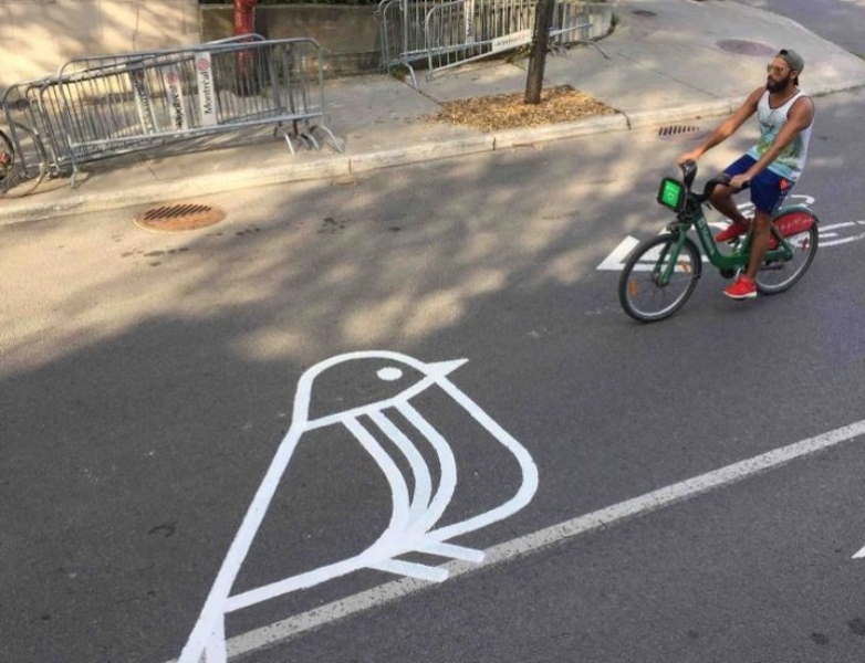 Στο Μόντρεαλ του Καναδά, τα σταυροδρόμια γίνονται στα χέρια του Roadsworth κούρνιες για πουλιά και οι ποδηλατόδρομοι σκοινιά για να σκαρφαλώνουν μαϊμουδάκια.