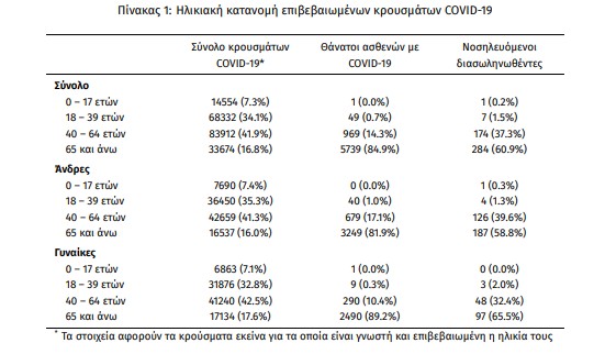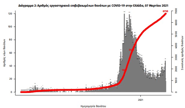 Οι νέοι θάνατοι ασθενών με COVID-19 είναι 53, ενώ από την έναρξη της επιδημίας έχουν καταγραφεί συνολικά 6.758 θάνατοι. Το 95.8% είχε υποκείμενο νόσημα ή/και ηλικία 70 ετών και άνω.