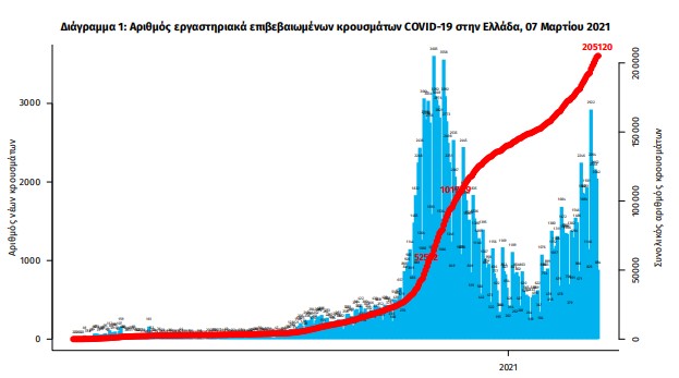Ο συνολικός αριθμός των κρουσμάτων ανέρχεται σε 205.120 (ημερήσια μεταβολή +0.6%), εκ των οποίων 51.7% άνδρες.