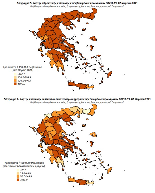 Συμπεριλαμβάνονται τόσο κρούσματα με ιστορικό ταξιδίου (“εισαγόμενα”) όσο και κρούσματα με πιθανή εγχώρια μετάδοση.