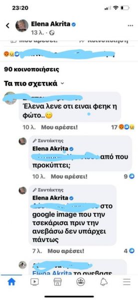 «Ελενα είναι fake news», της λένε. «Όντως δεν είναι τωρινή η φωτογραφία τελικά», λέει άλλος, σπεύδοντας, όμως, να προσθέσει ότι «όχι ότι φυσικά αλλάζει και πολλά…».