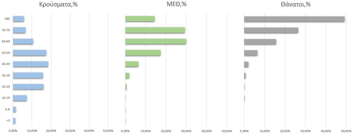 Η διάμεση ηλικία των κρουσμάτων είναι 44 έτη (εύρος 0.2 έως 105 έτη), ενώ η διάμεση ηλικία των θανόντων είναι 79 έτη (εύρος 0 έως 103 έτη).