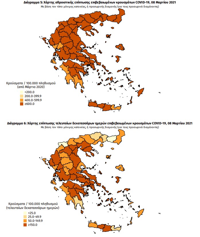 Με βάση τα επιβεβαιωμένα κρούσματα των τελευταίων 7 ημερών, 64 θεωρούνται σχετιζόμενα με ταξίδι από το εξωτερικό και 2.887 είναι σχετιζόμενα με ήδη γνωστό κρούσμα.