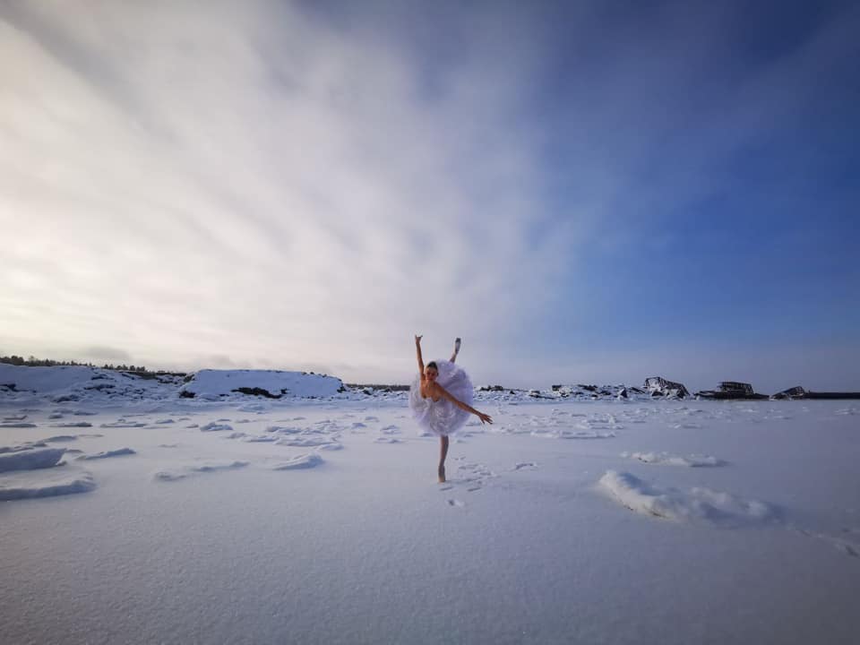 Η Ilmira Bagrautinova φόρεσε την εντυπωσιακή στολή της και χόρεψε αποσπάσματα από το διάσημο έργο του Τσαϊκόφσκι στον παγωμένο Κόλπο της Φινλανδίας.