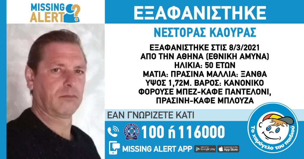 Με αυτά τα λόγια αναφέρεται η κόρη του 50χρονου Άκη Καούρα, ο οποίος αγνοείται από χθες το βράδυ. Σύμφωνα με τους συγγενείς του, εξαφανίστηκε μέσα από τα επείγοντα του νοσοκομείου Γεννηματάς.