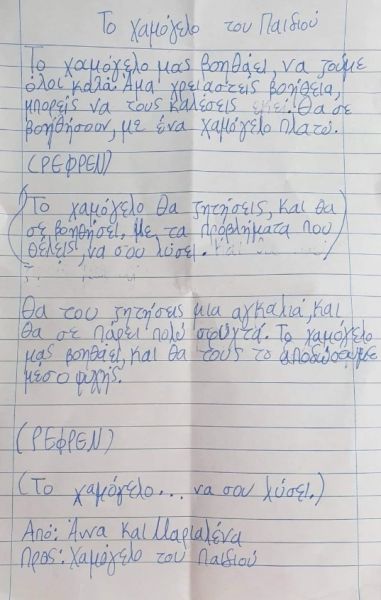 Το ποίημα το έδωσαν σε έναν από τους τους διασώστες του «Χαμόγελου του Παιδιού» χαρίζοντας μία νότα αισιοδοξίας.