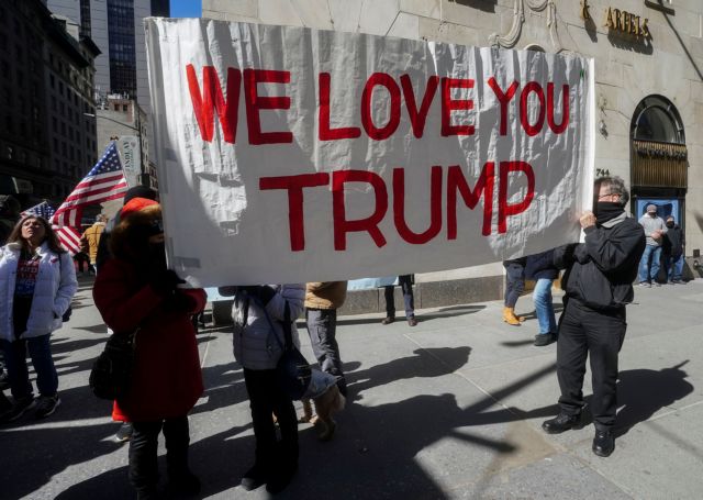 Κάποιοι κρατούσαν ένα πλακάτ με τη φράση «Λατρεύουμε τον Τραμπ», άλλοι άνοιξαν ένα τεράστιο λάβαρο με τη φράση «Τραμπ 2024».