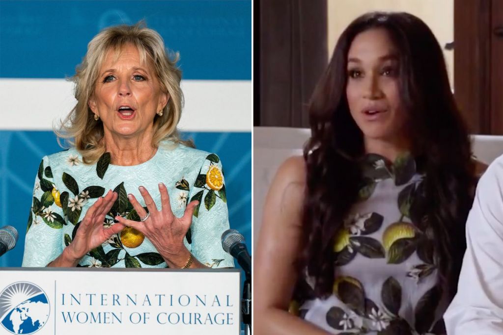 Στην ομιλία της για τα βραβεία International Women of Courage που πραγματοποιήθηκαν την Ημέρα της Γυναίκας, η Τζιλ Μπάιντεν επέλεξε ένα φόρεμα με print λεμονιών, από τον οίκο Oscar de la Renta. Με ένα σχεδόν ίδιο φόρεμα είχε εμφανιστεί πρόσφατα η Μέγκαν Μάρκλ.