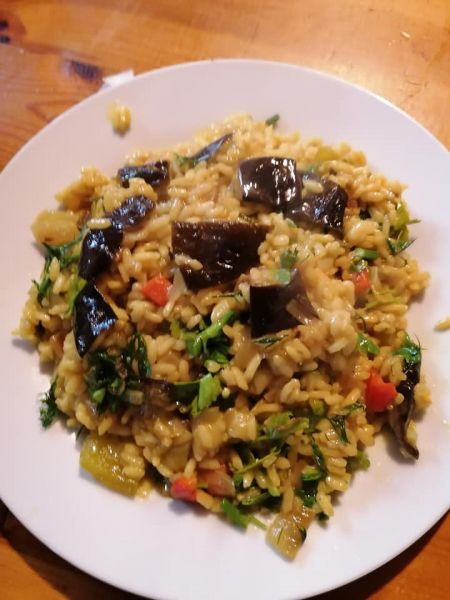 Η συγκεκριμένη συνταγή ίσως δεν σας είναι οικεία. Η Χιώτισσα μάνα του Μακάριου αποκαλούσε το συγκεκριμένο πιάτο «μελιτζανοπίλαβο» και το έφταχνε συχνά για την οικογένειά της. Είναι εύκολο, νόστιμο, χορταστικό και αρκούντως ιδιαίτερο για να σταθεί επάξια ως πρώτο ή κυρίως πιάτο στα μικρά οικογενειακά τραπέζια που επιτάσσουν οι καιροί.