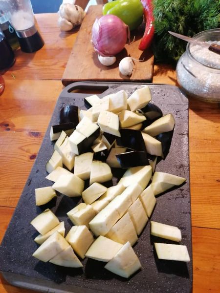 Μία μεγάλη ή δύο μεσαίες μελιτζάνες