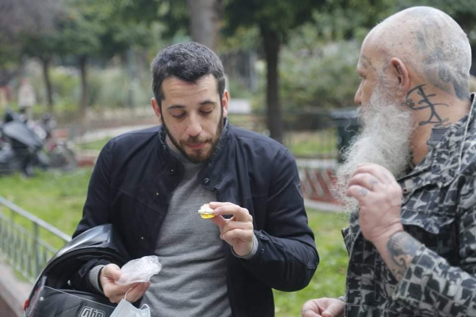 Λίγα λεπτά αργότερα, έρχεται ο Αντώνης Σελέκος και με το που παρκάρει την μηχανή λαμβάνει δώρο πολύτιμο από τον Στρατάκη: μερικά μακαρόν λεμόνι από το ζαχαροπλαστείο «Ακταίον» στη Νάξο, με αυθεντικό γαλλικό αέρα. Διεκδικώ το μερίδιό μου στην ευτυχία και παίρνω ένα κι εγώ. Λιώνει στο στόμα και τα αρώματά του είναι το κάτι άλλο. Ο καλύτερος τρόπος για να ξεκινήσει μια συζήτηση για ζαχαροπλαστική, σύνορα, μη σύνορα και, φυσικά, ταξίδια.