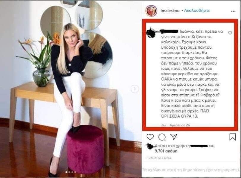 Συγκεκριμένα, δημοσίευσε το παρακάτω μήνυμα σε φωτογραφία της γνωστής παρουσιάστριας στο Instagram.