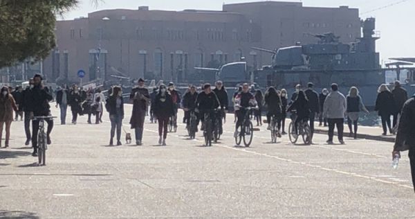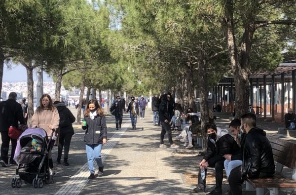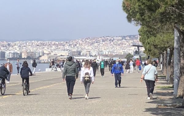 Από την άλλη πλευρά στην παραλία της Θεσσαλονίκης εκτυλίχτηκε ένα εντελώς διαφορετικό σκηνικό καθώς πλήθος κόσμου έσπευσε να εκμεταλλευτεί την ηλιόλουστη μέρα.