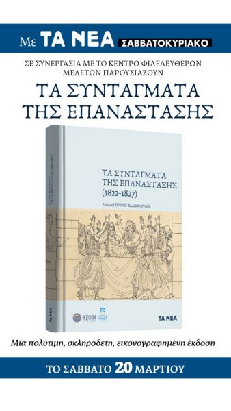 «ΤΑ ΝΕΑ Σαββατοκύριακο» σε συνεργασία με το Κέντρο Φιλελεύθερων Μελετών παρουσιάζουν Τα Συντάγματα της Επανάστασης. Ανεκτίμητης ιστορικής αξίας κείμενα, τα οποία με τον ριζοσπαστικό, φιλελεύθερο και δημοκρατικό τους χαρακτήρα αποτυπώνουν το όραμα, τις αξίες και τα ιδεώδη, που ενέπνευσαν του επαναστάτες Έλληνες για μια ελεύθερη και ανεξάρτητη πατρίδα.