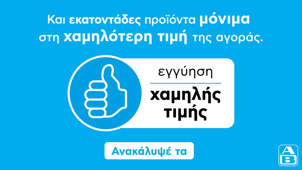 Σκέψου τώρα αυτό να συμβαίνει κάθε φορά. Να πηγαίνεις στο σουπερμάρκετ και να βρίσκεις εγγυημένα τις πιο χαμηλές τιμές της αγοράς σε εκατοντάδες προϊόντα πρώτης ανάγκης – και όχι μόνο! Και σίγουρα χαμηλές τιμές σε περισσότερα από 10.000 προϊόντα, για να μπορείς να διαλέγεις χωρίς εκπτώσεις στις επιθυμίες σου και την ποιότητα. Δεν είναι ανέκδοτο, αλλά αυτό που συμβαίνει στα ΑΒ!
