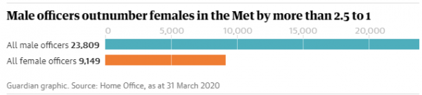 «Αξιωματούχοι και ακτιβιστές λένε ότι έχει σημειωθεί πρόοδος, αλλά εξακολουθεί να υπάρχει τοξική αρρενωπότητα στις τάξεις τους», αναφέρει, υπογραμμίζοντας ότι στη Μητροπολιτική Αστυνομία του Λονδίνου – τη μεγαλύτερη στο Ηνωμένο Βασίλειο – οι άνδρες αξιωματικοί υπερτερούν αριθμητικά έναντι των γυναικών σε αναλογία 2,5 έως 1.