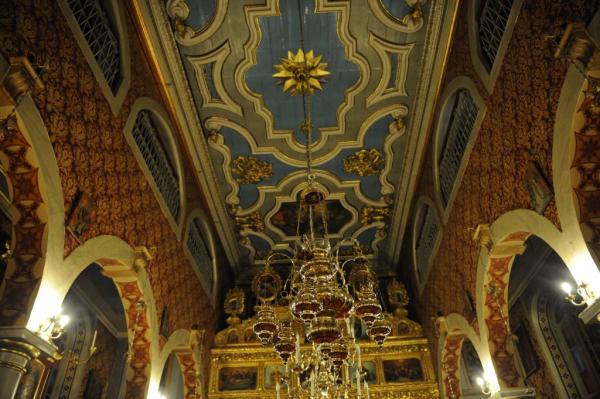Κύρια χαρακτηριστικά της Παναγίας των Ξένων, τρίκλιτης ξυλόστεγης βασιλικής, είναι η ουρανία (18ου αιώνα), έργο του ζακυνθινού κληρικού και αγιογράφου Νικολάου Κουτούζη, και το εξαίρετο επίχρυσο τέμπλο, που αποκαταστάθηκε το 1875.