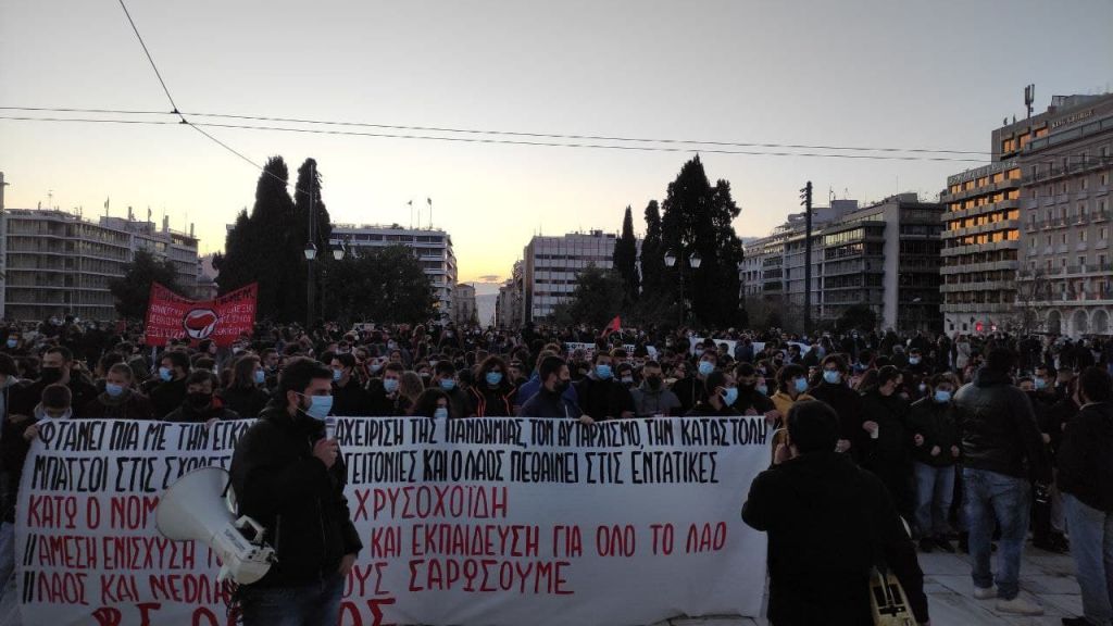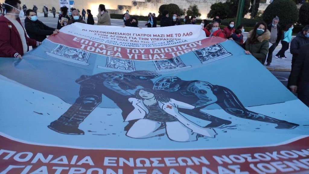 Ένας χρόνος πανδημίας. Συνεχίζουμε τον αγώνα για την υπεράσπιση της υγείας. Διεκδικούμε τα δικαιώματά μας κόντρα στον αυταρχισμό και την καταστολή», το μήνυμα που στέλνουν.