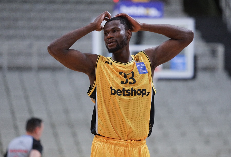 Στο φωτογραφικό (συγκλονιστικό) στιγμιότυπο της ΑΕΚBC, ο Κίνγκσλεϊ αποχωρεί από τον αγωνιστικό χώρο του Κλειστού του ΟΑΚΑ, υποβασταζόμενος από τον επίσης τραυματία Γιανίκ Μορέιρα».