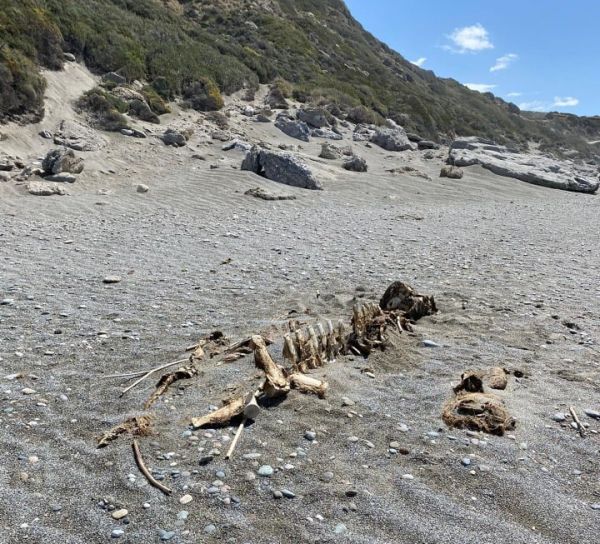 Ένα περίεργο σκελετό , πιθανότατα κήτους τριών μέτρων, ξέβρασε η θάλασσα στην παραλία της Τριόπετρας