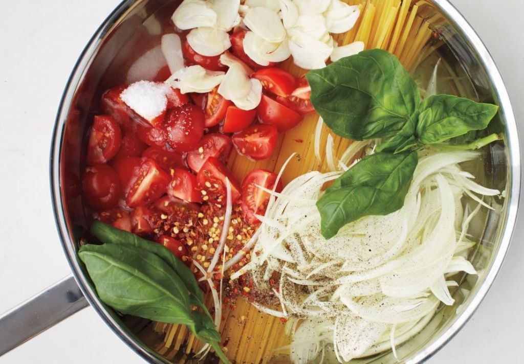 Για να φτιάξεις αυτή τη μακαρονάδα χρειάζεσαι μονάχα μια κατσαρόλα. Όλα τα υλικά μπαίνουν μαζί απ’ την αρχή (δεν χρειάζεται καν να βράσεις πρώτα το νερό), η σάλτσα δημιουργείται μόνη της, τα μακαρόνια βράζουν μέσα στη σάλτσα και το πιάτο είναι έτοιμο για φάγωμα μέσα σε ακριβώς 9 λεπτά.