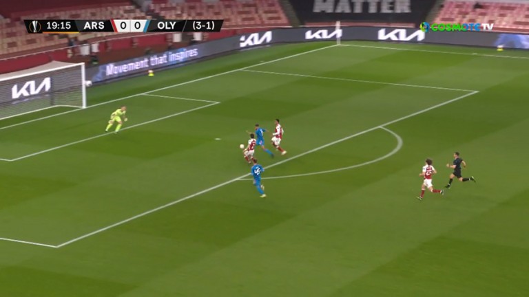Τεράστια χαμένη ευκαιρία στο 21′ για τον Ολυμπιακό να ανοίξει το σκορ στο Emirates.