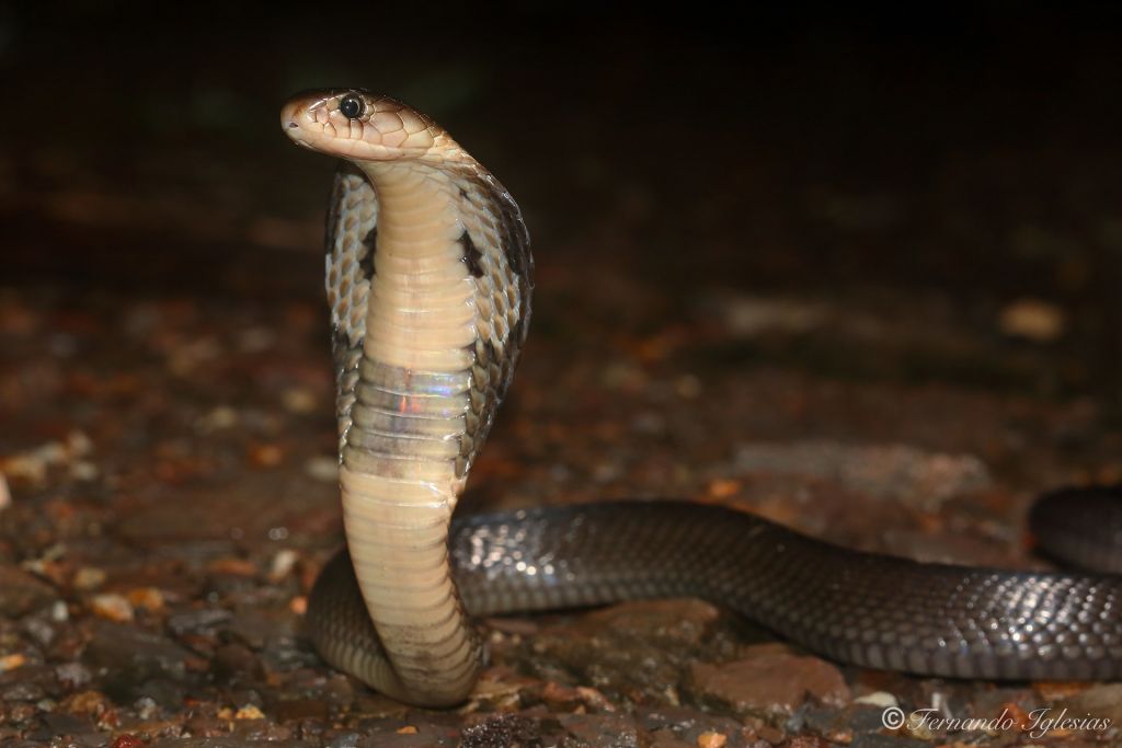 Η κόμπρα Naja kaouthia ξεχωρίζει από το «μάτι» στο πίσω μέρος του φουσκωμένου αυχένα (Indiansnakes.org)