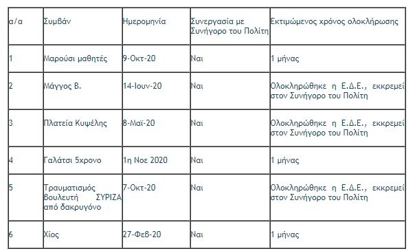 Η ανακοίνωση της ΕΛ.ΑΣ. συνοδεύεται από τον πίνακα: