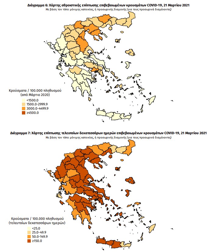 Με βάση τα επιβεβαιωμένα κρούσματα των τελευταίων 7 ημερών, 68 θεωρούνται σχετιζόμενα με ταξίδι από το εξωτερικό και 2.757 είναι σχετιζόμενα με ήδη γνωστό κρούσμα.