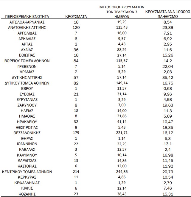 Υπενθυμίζεται βέβαια, ότι κάθε Κυριακή τα κρούσματα είναι μειωμένα σε σχέση με τις προηγούμενες ημέρες, μιας και ανακοινώνονται αποτελέσματα των τεστ που διενεργήθηκαν το Σάββατο, όπου τα διαγνωστικά κέντρα υπολειτουργούν. Το ίδιο συμβαίνει και τις Δευτέρες, όπου ανακοινώνονται τα αποτελέσματα των τεστ που έγιναν την Κυριακή.