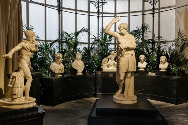 Τα αρχαία αριστουργήματα συνομιλούν με τις νεοκλασσικές εκδοχές τους μέσα στο εμβληματικό Μέγαρο Σταθάτου, ένα δείγμα του ελληνικού Νεοκλασσικισμού του Έρνστ Τσίλλερ, που αποτελούσε την κατοικία της οικογένειας του Όθωνα και της Αθηνάς Σταθάτου μέχρι το 1938. Το κοινό θα έχει τη μοναδική ευκαιρία να δει το εσωτερικό μιας πραγματικής μεγαλοαστικής ευρωπαϊκής κατοικίας του 19ου αιώνα, βιώνοντας μία θεατρική εμπειρία. Η διαμόρφωση χώρου είναι της Χλόης Ομπολένσκυ, που υπογράφει την πρώτη της σκηνογραφία σε μουσειακή έκθεση και του Ανδρέα Γεωργιάδη.