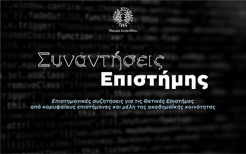 Το Ίδρυμα Ευγενίδου εγκαινιάζει έναν κύκλο συζητήσεων με τίτλο «Συναντήσεις Επιστήμης» που αναμένεται να καλύψουν τομείς όπως τα Μαθηματικά, τη Βιολογία, τη Φυσική, τη Χημεία, τη Κοσμολογία, το Περιβάλλον αλλά και την Πληροφορική.