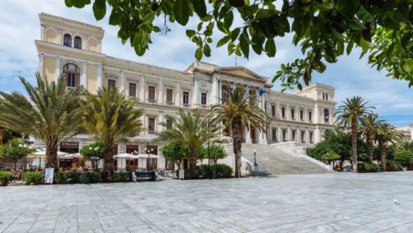 - Το επιβλητικό κτίριο του Δημαρχείου, στην όμορφη πλατεία Μιαούλη, έργο του γερμανού αρχιτέκτονα Ερνστ Τσίλερ. Θεμελιώθηκε το 1876 και ολοκληρώθηκε το 1889.