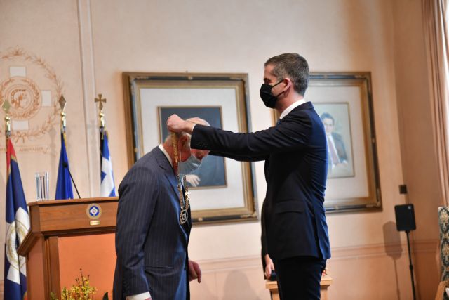 Σε μια ειδική τελετή που πραγματοποιήθηκε νωρίτερα στο Δημαρχιακό Μέγαρο, ο κ. Μπακογιάννης παρασημοφόρησε τον Πρίγκιπα της Ουαλίας με την ύψιστη διάκριση της ελληνικής πρωτεύουσας, σε αναγνώριση της συνδρομής του λαού του Ηνωμένου Βασιλείου στην απελευθέρωση της Ελλάδας, αλλά και της αφοσίωσης και της συνεισφοράς του ιδίου στην προστασία του περιβάλλοντος, στην προάσπιση της πολιτιστικής κληρονομιάς και στην προώθηση των γραμμάτων και των καλών τεχνών.