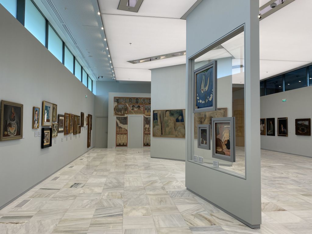 «Οι επισκέπτες θα περιηγηθούν στην εντυπωσιακή αίθουσα αφιερωμένη στα έργα του Νίκου Χατζηκυριάκου-Γκίκα, στα ζωγραφικά τοπία του, τις νεκρές φύσεις τις οποίες αποδίδει με έντονο μετακυβιστικό ύφος, με φως και χρώμα ελληνικό. Και φυσικά στα έργα του Μικρασιάτη Φώτη Κόντογλου, ο οποίος αναζήτησε τις πηγές της έμπνευσής του στο Βυζάντιο και στην ανατολική παράδοση, απορρίπτοντας κάθε επαφή με τη δυτική τέχνη. Η προσωπικότητα και οι ιδέες του θα επηρεάσουν πολλούς καλλιτέχνες της Γενιάς του ’30».
