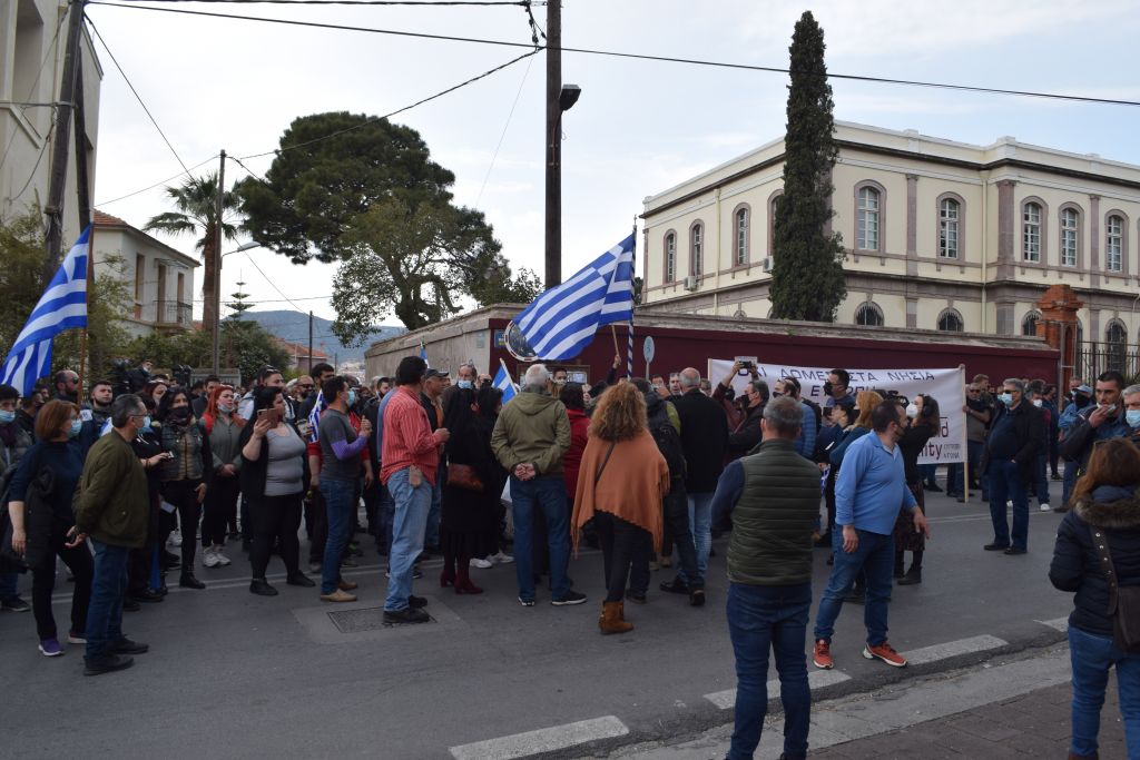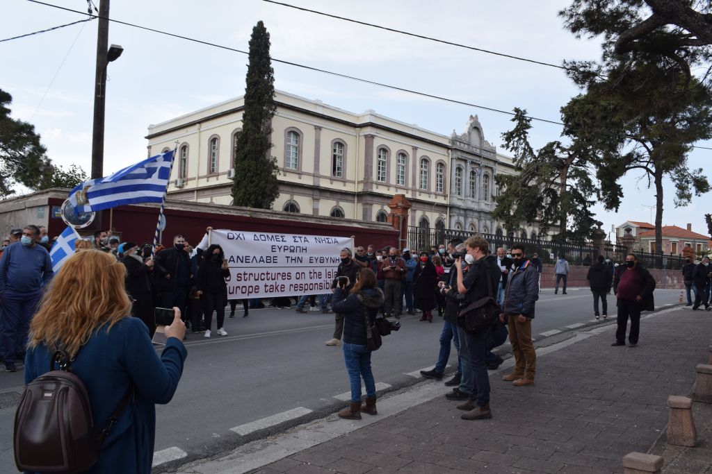 Στην συνέχεια οι συγκεντρωμένοι κατευθύνθηκαν με πορεία προς την Γενική Γραμματεία Αιγαίου, όπου βρίσκονταν η κ. Γιόχανσον και τις επέδωσαν ψήφισμα, στο οποίο έθεταν την αντίρρηση τους για τα σχέδια της Ε.Ε να μετατρέψει τα νησιά σε γκρίζες ζώνες και αποθήκες ψυχών.