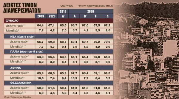Η μέση αξία πώλησης αναμένεται να κινηθεί ανοδικά, ακολουθώντας τον «νόμο της προσφοράς και της ζήτησης». Ηδη, σύμφωνα με στοιχεία της Τράπεζας της Ελλάδος, το τέταρτο τρίμηνο του 2020 οι τιμές των διαμερισμάτων (σε ονομαστικούς όρους) αυξήθηκαν κατά μέσο όρο κατά 2,6% σε σύγκριση με το αντίστοιχο τρίμηνο του 2019, ενώ για το σύνολο του 2020 η μέση ετήσια αύξηση των τιμών των διαμερισμάτων ανήλθε σε 4,2% έναντι αύξησης 7,2% το 2019.