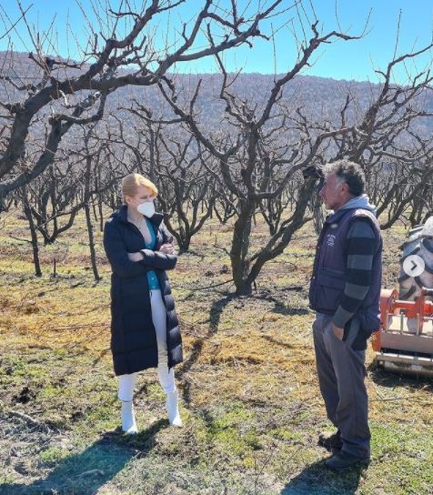 Μάλιστα η ίδια έκανε αναρτήσεις στο Instagram για την περιοδεία της και σημείωσε ότι ενημερώθηκε από παραγωγούς για τον παγετό που προκάλεσε τεράστια προβλήματα στην εκλογική της περιφέρεια.