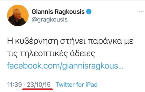 Ως κοινοβουλευτικός εκπρόσωπος του ΠΑΣΟΚ την περίοδο 2015-2016 ο Γιάννης Ραγκούσης έλεγε ότι αν ψηφιζόταν ο νόμος για τις τηλεοπτικές άδειες θα αναζητούνταν ποινικές ευθύνες.