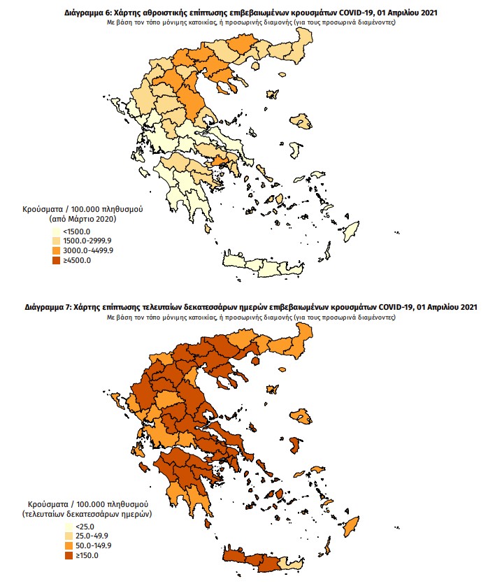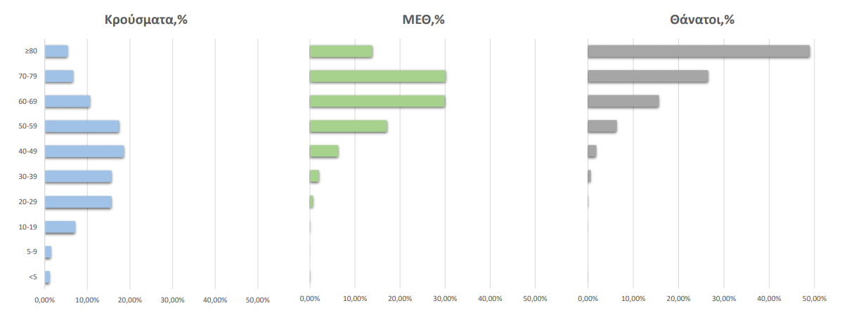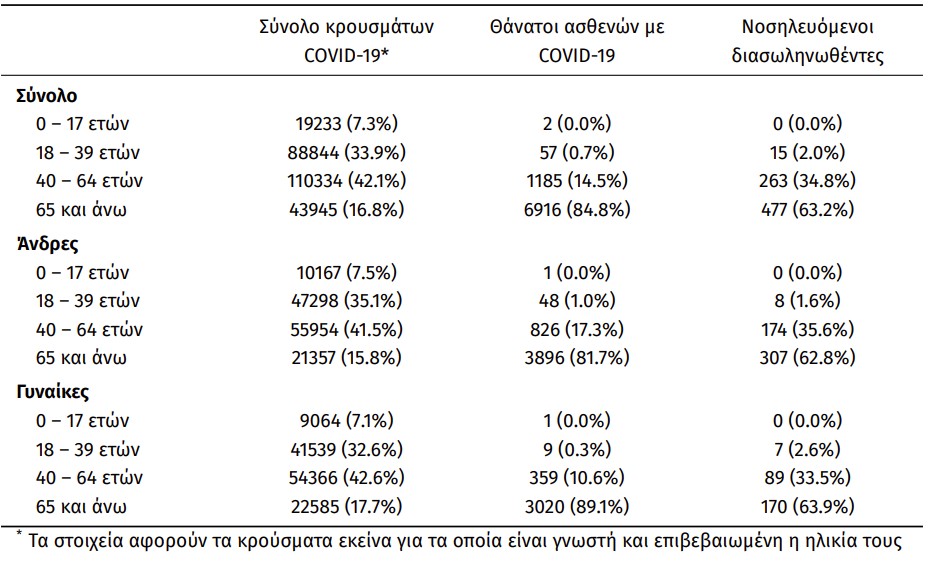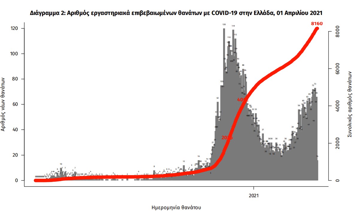 Οι νέοι θάνατοι ασθενών με COVID-19 είναι 67, ενώ από την έναρξη της επιδημίας έχουν καταγραφεί συνολικά 8.160 θάνατοι. Το 95.7% είχε υποκείμενο νόσημα ή/και ηλικία 70 ετών και άνω.
