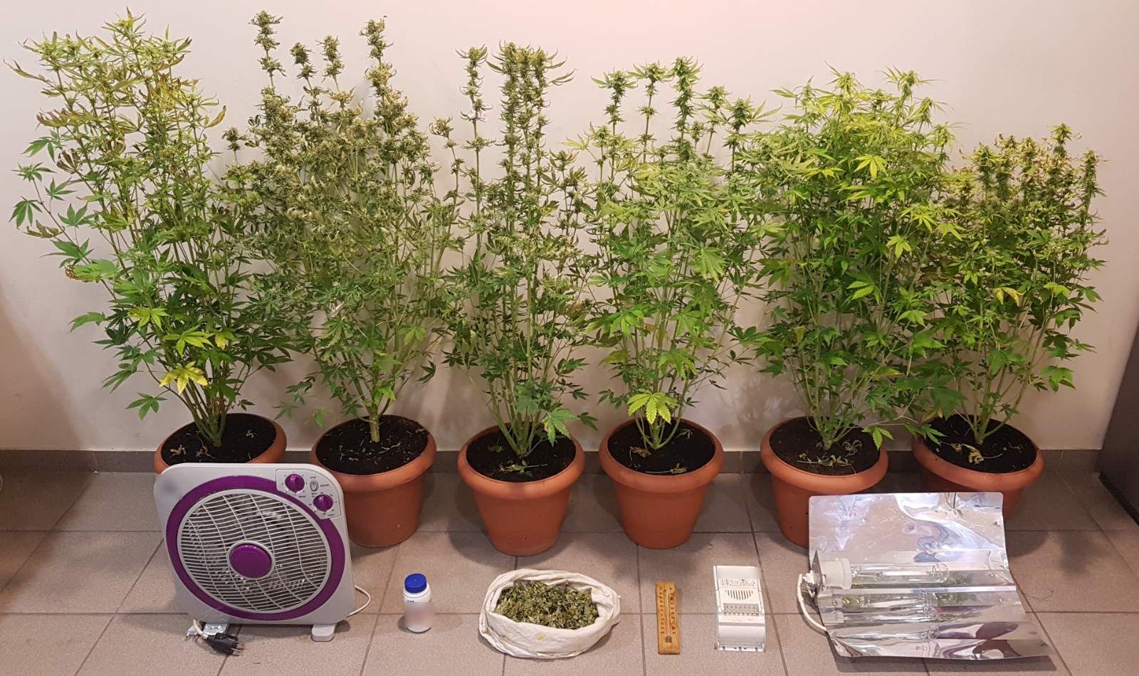 Κατά τη διάρκεια της επιχείρησης και έρευνας βρέθηκαν και κατασχέθηκαν 6 δενδρύλλια κάνναβης, τα οποία καλλιεργούντο επιμελώς με τη μέθοδο της υδροπονίας σε ξύλινη ντουλάπα, ποσότητα φύλλων κάνναβης βάρους 72 γραμμαρίων, εξοπλισμός που χρησιμοποιούνταν για την υδροπονική καλλιέργεια (λαμπτήρας παραγωγής τεχνητού ηλιακού φωτός με κάτοπτρο, θερμόμετρο, ανεμιστήρας, ηλεκτρικός μετασχηματιστής) και σπόροι κάνναβης.