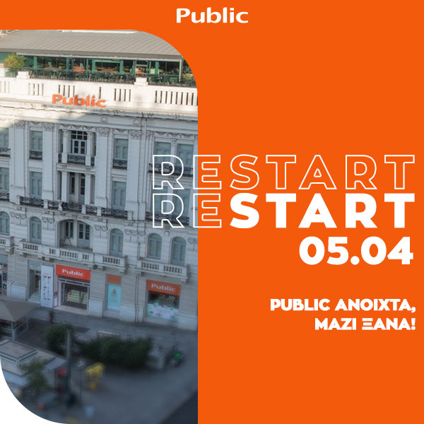 Το Public κάνει από σήμερα “restart” σε όλη την Ελλάδα, με απόλυτη ασφάλεια! Το φιλόξενο προσωπικό της #1 αλυσίδας ψυχαγωγίας και τεχνολογίας στην Ελλάδα υποδέχεται τους καταναλωτές για αγορές από όλες τις προϊοντικές κατηγορίες, με Click Inside ή Click Away!