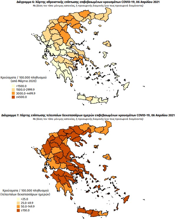 Συμπεριλαμβάνονται τόσο κρούσματα με ιστορικό ταξιδίου (“εισαγόμενα”) όσο και κρούσματα με πιθανή εγχώρια μετάδοση.