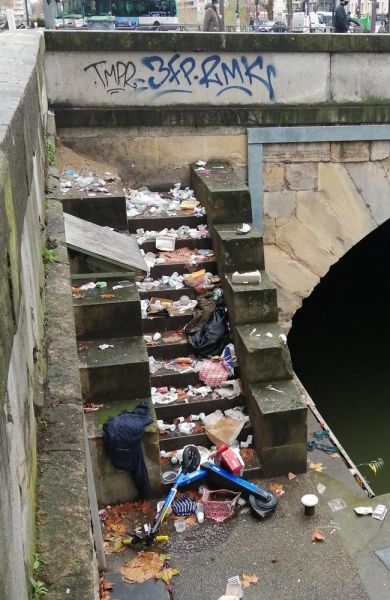 Εκτός από τα σκουπίδια σε δρόμους, πάρκα, ακόμη και στον Σηκουάνα, φωτογραφίζουν σπασμένα παγκάκια, πλημμυρισμένα πλακόστρωτα σοκάκια, πασσάλους χωρίς πινακίδες σήμανσης κ.α.