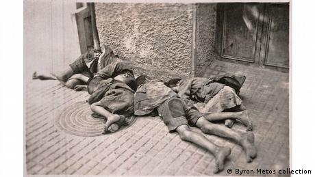 Μια φωτογραφία από την οποία αναδύεται όλη η φρίκη της κατοχής, δείχνοντας απλώς παιδιά να κοιμούνται στην άκρη του δρόμου. Δεν είναι κάποιο παιχνίδι. Αποσκελετωμένα, με κουρέλια, εξουθενωμένα από την πείνα.
