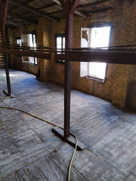 Σύμφωνα με το χρονοδιάγραμμα και την σειρά των εργασιών, στο πρώτο δεκαήμερο του Απριλίου ολοκληρώνονται οι καθαρισμοί στο κτήριο. Ηδη έχει γίνει η καταγραφή των σημαντικότερων από τα κινητά αντικείμενα, τα οποία απομακρύνθηκαν από το κτήριο προς φύλαξη. Μεταξύ αυτών συμπεριλαμβάνονται τελάρα, έπιπλα, σφραγίδες, υφάσματα, αντικείμενα από το χημείο και χαρτώο υλικό. Μέχρι το τέλος Μαϊου ολοκληρώνεται η αποτύπωση του κτηρίου και καθορίζονται οι μελλοντικές χρήσεις τους, ώστε να συνταχθεί το κτηριολογικό πρόγραμμα. Στη συνέχεια, και μέχρι το τέλος Οκτωβρίου, θα εκπονηθούν οι απαιτούμενες μελέτες (αρχιτεκτονική, στατική, ηλεκτρομηχανολογική) για την πλήρη αποκατάσταση του κτηρίου.